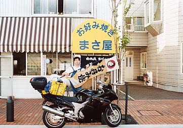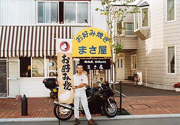 さて占冠を過ぎ、そのまま帯広方面に向かえばそれほど遠くはないのではあるが、せっかくここまで来たのなら富良野の方に是非立ち寄りたいところがあった。麓郷ではない。美瑛の丘でもない。十勝岳温泉には多少未練があるが、それとてそこから登れる山に対するという気持ちだけで、温泉そのものに対する興味ではない。自分の興味は富良野駅からほど近い「関西風お好み焼き まさ屋」だ。こちらのお店はネット系ライダーの一部にはやたらに有名なお店で、自分も及ばずながらリンクを張らせてもらっている。でも、ここのオーナー(上の写真ですね)は、自分と同じワーキングホリデーの経験者。カナダがメインのようで、それでいてニュージーランドのワーホリも経験済み。で、いろいろ各地を巡った最後、富良野にお店を出している方なのであります。 |