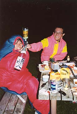 ま、何はともあれとりあえずテントを張って、その後買い出し&風呂に行って、と思っていたら、携帯にメッセージが入っていた。おとうからだ。いわく、「今15:30、これから上士幌出て多和平に向かうから夕飯買っておいてね」。うーむ、さすがおとうだ。午後3:00過ぎて、テント撤収して移動しようというのは「まったり」の鏡だ。わたしゃ去年まったりおとうの向こうを張れるんじゃないかと思ったこともあったが、この真似は断じて出来そうにない。完敗、いや、今晩も乾杯だ(何言ってんだか)。 |