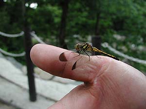 富良野に向かう途中の三段滝パーキングでは、トンボに妙になつかれた。さわっても逃げない。