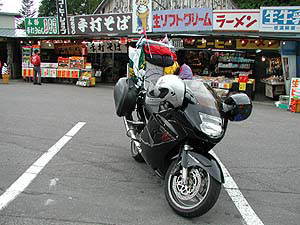 北見でガソリンを入れてから休憩なしで来ていたので、石北峠でちょっと長めの休憩。狭い駐車場ですがガラガラ。こちらがバイクのエンジンを止めると、「はぁ〜い、ソフトクリームはいかがですかぁ」の声。それにつられて1個買ったんですが、予想に反して?なかなかの味。しかし、この一風うらぶれた感じの峠の雰囲気、改めてみると結構好きだなぁ。最近はどこに行っても大同小異金太郎飴の「道の駅」に慣れちゃってましたから、かえってこういう昔懐かし系のほうがツボにしっくりくるのかもしれません。