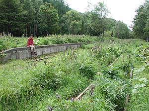 ここが幌加駅の跡でした。士幌線は帯広〜十勝三股の間を結んでいた鉄道ですが、昭和53年には糠平〜十勝三股間が鉄道廃止、バス代行輸送になりました。そして残りの区間もおって廃止になったわけですね。自分が小学生の頃鉄道ファンだった時には「北海道=網の目のような鉄道」を印象づけられたものですが(当時は、『○○線でSL運行廃止!』というのが鉄道雑誌のメインニュースでした)、いつの間にか道内の鉄道そのものがほとんどなくなってしまってからもう随分たつんですね。今でも道内には、「開通させるつもりで工事したにもかかわらず工事中止になってそのままほったらかし」という建造物が結構多く見られます。美幸線の未開通ルートあたりは、それこそ立派な盛り土やピカピカコンクリ土台が印象的でした。10年近く行っていませんが、どうなっているのかなぁ。
