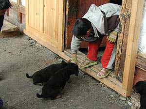 というわけでおしんこどんもおっかなびっくり子犬たちに遊ばれることに。てなことでメインストリートの探訪終了!首都から265km、約11時間離れたブムタンの午前中はこのようにだらだらと過ぎていったのでした。