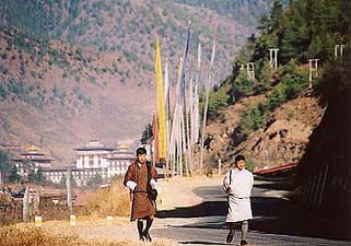 しっかり晴れ上がったティンプーの朝。お二人は「出勤」されるところでしょうかねぇ。