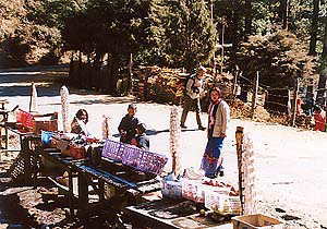 ちなみにここは、山側の奥の方にいくつか民家が見えるものの、道沿いにはほんの4-5軒くらいの家があるだけの小さな村です。しかしその道沿いには、ごくたまに通過する外国人目当てと思われる小さな露店が出ていました。