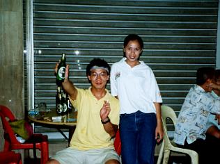 これは別にこの2都市に限ったことじゃないんだけれど、マレーシアの中国系の食堂には、夜になると必ずビール会社派遣のウェイトレスがいるんだよね。で、席に座るとまずは「お飲物は?」とやってくる。ここで「お茶!」なんていうともう彼女らは二度と近づいてこない。商売にならないから当然だ。だいたいCarlsburg・Tiger・Guinessのどれかの制服を着たおねえさん達なので、特にこだわりがなければ制服のロゴを見て、そのブランドのビールを頼んであげましょう。そうするとその彼女がビールを持ってきて、きちんとついでくれます(めいっぱい)。それだけじゃなく、グラスに残った量が半分くらいになるとわざわざ継ぎ足しに来てくれます。これは、サービス精神が旺盛というよりは彼女らの給与体系、すなわち歩合制によるところが大きいモノであるらしく、ビンが空になるとすかさず「One more?」と聞いてきます。ちなみに写真の彼女、AmleyさんはCarlsburgからの派遣で、3日間同じ店(成興飯店)で夕メシ食いつつ飲んでたらすっかり仲良くなってしまい、しっかり携帯の番号も教えてくれ(こっちから聞いたんじゃないよ)、なんと今ではメールフレンドになってしまいました(^O^)。あ、彼女を見ると「制服ってどれ?」と思ってしまうかもしれませんが、この時は上のポロシャツがそうでした。普通は上下そろいの制服のバージョンで、彼女も最初の日は緑の制服着てました。一人旅で街に泊まるときはなかなか話し相手を作りにくい場合もあるので、地元の人と知り合いになるには食堂行っちゃって周りとばか話するのが一番手っ取り早いのかもしれません。
