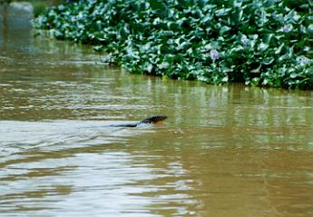 見たくなかった人許してね。蛇だけはいつ行っても必ず見られることでしょう。岸辺から水の上に張り出した木の上でじっとしているので、真下から見られることもしばしば。「おいおい、ジャングル映画でよくあるようにいきなりドサッて落ちてきたらどうするんだよ!」と不安になりますが、なんでも蛇は一旦食事をするとそのまま腹ごなしに4日間くらい動かずにじっとしているので、その間なら別に危険はないとのこと。へーっとは思ってもやっぱり少し不安ではありました。
