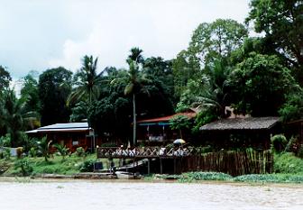 Sukau村はSandakanからバスで3時間弱。とはいっても公共交通機関で行くのはほぼ不可能。ミニバスはあるのかもしれませんが、それとて途中までのような気もします。国道をはずれるとずっとダート道だし、車の量もぐんと少なくなるし、Gomantong Caveも含め、ここに行くのは明らかに現地ツアーにのっかってしまうのが安直だけれども一番確実な方法です。