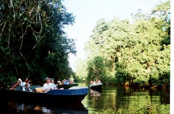 ちなみに人々はこんな感じで観察するわけです。この日は全部で4隻のボートが出てましたが(ちなみに宿も4つしかない)、行ったのが雨期(12月下旬)だったためやはり客は少ないとのこと。乾期はもっと込むらしいです。でも雨期とはいっても、運が良かったのかこの時の旅では雨にたたられるようなことは(日中は)ありませんでしたけどね。このときは自分たちのボートが一番先に出発したため、撮影のベストポイントを常にキープできました。でも、別のボートなんかでは動物そっちのけでルアー釣りにいそしむ白人ツーリストもあり、あれはあれで楽しそうでしたよ。