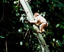 駐車場からジャングルの中を少し歩くといよいよCaveの入り口になるのだが、そこにはちょっとした村があり、建物のはずれでは野生のサル(ブタオザル)がうきゃうきゃと遊んでいた。なんだか凶暴そうに見えたのは気のせいか?