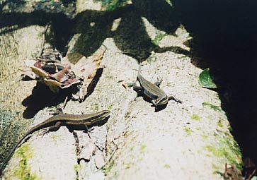 最後にもう一枚。まあトカゲなんてものはジャングルの中にくさるほど居るわけですが、こいつら2匹はひなたぼっこの最中なのか全然動かない。約30分後にもう一度ここを通りかかったときにもまだ同じ態勢で佇んでいたなぁ。そんな生き方、うらやましい。スティーブさんは「こいつらと私は友達なんだ」と言い出し、しきりに声を掛けておりましたとさ。