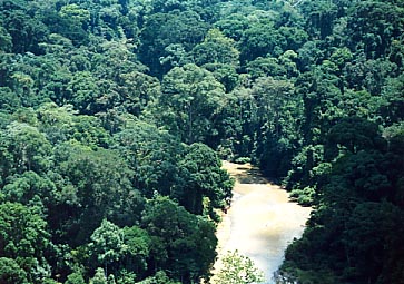 そうそう、熱帯雨林の大木といえば「板根(ばんこん:上の写真左)」を抜きにして語ることは出来ません。熱帯雨林では葉や小枝など、温帯ではじっくりと時間をかけて熟成(腐っていく)ものが、高温ゆえたちまちのうちに腐ってしまい、我々の感覚でいう腐葉土というものがほとんど存在しません。従って表土が薄くなり、樹木はその薄い表土部分に根を張ろうとするわけですから当然倒れやすくなります。高ければ高いほど安定度に不安が出てくるというわけで、その対策として木々が考え出したのが板根というわけです。
