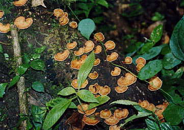 湿度の高いジャングルゆえ、キノコなどの菌類は至る所に群生しています。