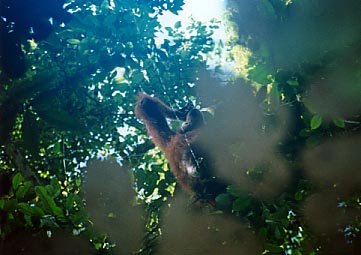 群れを発見。彼らは何と吊り橋のワイヤーを器用に伝って