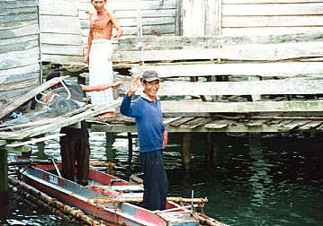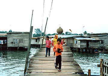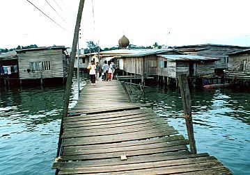 でもこの疑問はふとしたことから解決できた。それは、ここの水上集落が隣国ブルネイにあるそれと同質のものではないかという仮定だ。ブルネイ政府は水上集落の住人に陸に上がって住むことを奨励し、実際に陸に家(団地)などを供給しているというが、集落に住む人たちの多くは陸での生活を頑としてうけ入れず、これまで通り水上の暮らしを続けているというのだ。もはや海の上に住む実質的な意味などなくても、慣れ親しんだ生活を続けたいというのはごく自然な気持ちだろう。さっき必然性ということばを使ったが、必然性とか実質とかを超越した、ほのぼのとしたこの環境こそが、彼らがここに住み続ける最大の理由なのかもしれない。