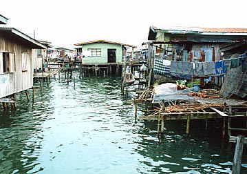 ここでふと考えたこと。それは彼らが本当にマレーシアの国籍を持った人々なのだろうかという疑問。つまり、隣接するインドネシアやフィリピン(どちらも国境まではさして遠くない)の国籍であるが故に、陸(おか)での定住には差し障りがあるのはないかという可能性だ。たとえば、コタキナバルの沖に浮かぶ島にあるいくつかの水上集落は不法定住者のものであるらしいし。しかし、そことてわざわざ陸から離れた島に住みつくくらいの「遠慮」とでも言えるような雰囲気がある。ここは市内中心部の真横に隣接するような形で存在しているわけで、ちょっと堂々としすぎてる。もしそうだとしたらやはり政府が取り締まるよなあ。