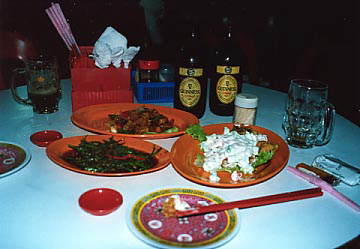 さて、この水上集落付近の段差にて名誉の?負傷を負ったおしんこどんではあったが、とりあえず大事には至らず。これから内陸の熱帯雨林へと入り込んでいくわけだからケガは禁物。というわけで、身体の中から消毒をというわけで、ムスリム比率の高いこの町では数少ないビールの飲める中国系の食堂を探し求めたTakema一行なのであった。