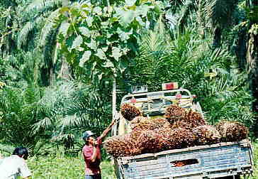 このパーム椰子、たとえば日本では「天然の椰子の実洗剤っ!」とかで某大手企業がよく宣伝をしている原材料にもなるし、その他化粧品など色々の原料になるらしい。コレステロール値も低く色々な意味でもてはやされるいいことずくめの材料とも言えるらしい。ただ、その結果植生が単一化したり土壌がやせてしまったり、そして何よりも土着の動植物が追い出されてしまっているのではあるが(事実、新しく開墾された地域からはオランウータンが「救出」されたりするらしい)。
