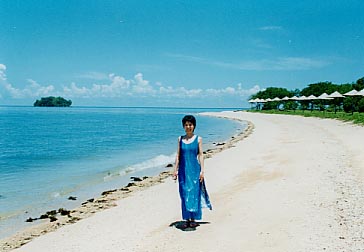 さて、途中ランチのために別の島に立ち寄る。あれ、前回も同じパターンだったのに島の名前をまたど忘れしてしまったm(_ _)m。ま、ともかくビーチリゾート系のこの島にてランチ後、海辺を散歩することに。水はとっても綺麗だ。泊まり客もほとんどいないようで何とも心地よい。でもここにはウミガメは決して上陸しない。人が住み、卵を掘り返す犬がいて、さらに人のともす灯りがあるからだ。