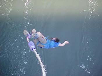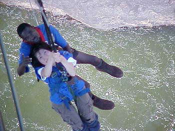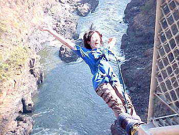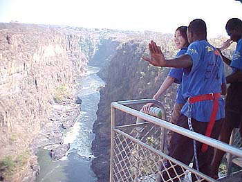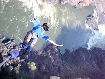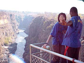 さて、以前ナミビア周辺情報の件でメールをやりとりしたことのある「まっつん」さんが、2002年夏南部アフリカの旅を終えて帰ってこられました。しかし!帰国の旨を記したメールにはなんとビクトリアフォールズのバンジー画像が添付されていたのです!う、うらやましい、うらやましすぎる!しかも2回もジャンプしたとはぁ!