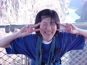 喜びとも泣き顔とも判別しがたい、恍惚の表情を見せるまっつんさん。ん?川の下の方に見えるのは虹じゃないですか!「虹に向かってジャンプ」なんて、まずめったに出来るもんじゃありませんね。いいなぁ。そしていよいよ飛び出し!おおっ、何か叫んでますね。「きゃ〜」だったら女の子らしくていいけれど、もし「ふんぎゃお〜っ」とか「どっひょ〜っ」とかの意味なし擬音だったりしたら人格疑われちゃいますね(何のこっちゃ)。 |