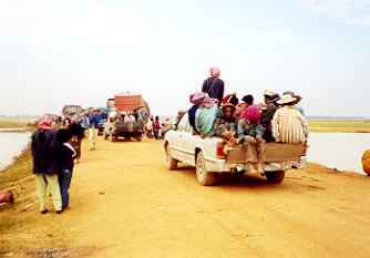 Phnum Liebからは、これまでと同じくダートとはいえ、明らかに状態のいい道になった。トラックも快調に飛ばす(それでも相当揺れるので、落ちたら絶対に大けが間違いなし)。「こっこれは、トータル6時間どころか5時間もかからないんじゃないか?」と心ときめかせ始めたころであった。