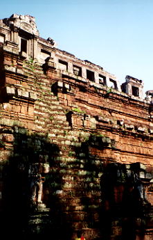 さて、このあたりにはいくつもの遺跡が歩いていける距離に散在しているので、その中でも近くに位置するピミアナカス寺院とやらに行くことに。遺跡のほとんどは見るだけでなく登ることも全く可能であるので、ここのてっぺんまで登ってみることにした。しかし、これらの遺跡はもともと宗教の象徴的な建築であるので、登りにくいことおびただしい。すなわちエラク急なのである。真正面からではその急斜度がわからないので、あえて斜めから撮ってみた。