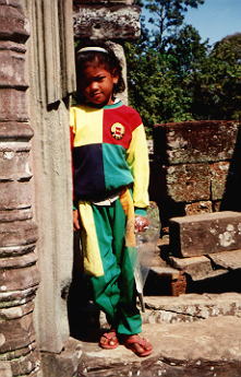 さて、こういうマイナーな遺跡の頂上まで登りに来るガッツある人はよほど少ないと見えて(ツアーの人たちはこんなほうまでは来ない)、頂上ではしばし日ざしを浴びながらのんびりとする。ん?誰だか人の気配がするぞ。ヤバイか?と思ってうとうとした気分を引き締めて気配のほうを向くと、そこには地元の少女が。ははぁ、物売りだなと思って、意識するでもなく無視するでもなくそれなりの対応をしていると、彼女は物陰からじっとこちらの様子をうかがっている。こう書くとなんだか緊張感あふれる雰囲気だが、実際は「思いっきり物おじしているはにかみ屋の女の子に見られている」といった感じで、その時、ふとあの名作「二十四の瞳」を思い出してしまった(笑)。