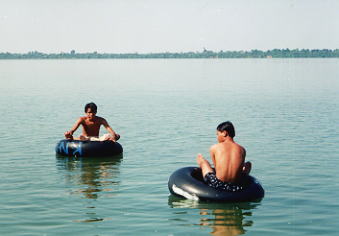 なお、シェムリアップ周辺にはお堀というか人造湖というか、とにかく多くの水面が広がっています。ものの本によると、これは当時の治水及び農業の象徴として云々とありますが、驚くべきはやはり西バライですね(右の写真)。これが人造湖、しかも見えている対岸は横長の湖の短い側のもの、両側の幅はその約数倍!しかもかつてはこれと同じ面積を誇った東バライまであったというのだから!すごい!というより驚き以外の何ものでもないなあ。しかし後悔は、やはり海パンを持っていかなかったことだなあ。旅行者などほとんど見かけなかったが、唯一目立っていた白人の男二人組は、しっかり「ヒャッホーッ」という叫び声と共に泳ぎまくっていたぞ。