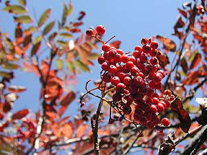 ナナカマド。鳥も食べない実のはずなのに、どうしてこんなに美味しそうなのだろう。