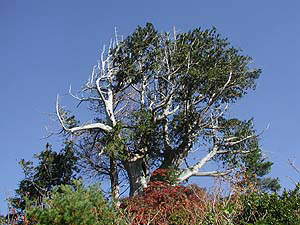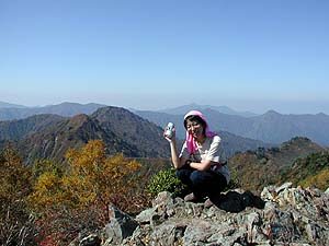 そのうち三角点のある頂上からあぶれた(入りけれない)団体がこちら方面に流れてきた。たしかに、あの頂上のキャパは本来10人くらい、そこに一時は25人くらい詰まっていたのだからこりゃしょうがないなぁ。食べ終わってコーヒーでくつろいでいた我々は、そのうちの一人のおばちゃんと話し込む。うーむ、元気すぎるぞ中高年!それに引きかえ、今回も若い兄ちゃん姉ちゃんの姿はほんの一部。若いうちに動かさなかった身体は、年を取ってから動くモノではないのだと思うのだが‥(その逆が最近の中高年登山者ね)。
