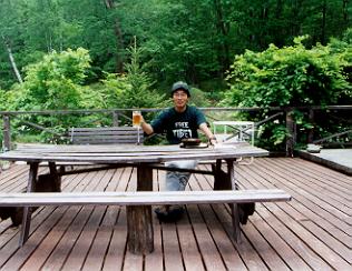 で、みずがき山荘でちょっと早い昼食と相成った。え、手に持ってるのは何かって?当然麦茶に決まってるじゃないですか。「む・ぎ・ちゃ!」それはとにかく、あたりはハルゼミの、あの「カナカナカナ・・」という、何とも風情あふれる大合唱(好きなんだよなあこのセミ。「旅に来たぞ!」って感じで)。もうそれだけで十分!という感じはあるのだが、今回はまだまだ先は長いのだ。