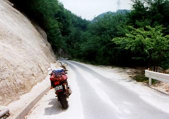 「クリスタルライン」とは、山梨県の黒森(マップルP50 6G)からみずがき山荘を経由し、木賊峠、乙女高原などを通って大弛峠からの林道と合流する、かなり長い舗装林道です。舗装ということで気楽に入っていけますが、道幅はやはり林道だし、場所によってかなり砂浮きも見られたので、むやみに「攻めて」いくと大変なことになるかもしれません。