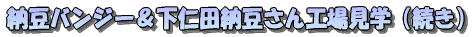 そして、ここで一つの事実が発覚。実は、今回バンジーに参加したダニーさん、なんと「納豆食べたことがない、だってにおいが駄目なんだ」ということだ。そうなると、納豆学会長としての血が騒がずにはおれない三井田さんと南都さん。「今度のTV企画じゃないけれど、『納豆を食べられるようにしよう企画』、いきましょう」ということに。とはいっても、料理法を変えフレーバーを変えという状況ではないので、生(き)で食べてもらってにおいの度合いを比べてもらったり、ちょっとしょうゆを垂らして食べてもらったりというだけだったことから「すぐさま納豆好き!」に変貌したわけではなかったが、でも、こちらの納豆なら「納豆嫌い」のままでいくことはないように思える。だって、全然においないもの。ただあの時、「チーズと同じ」というアドバイスは余計だったかも。だって、チーズはチーズ、納豆は納豆だもんね。