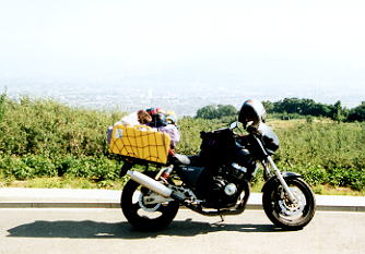 さて、朝から大食いを強いられ、どうも気分が(いや、腹が)重いTakemaではあったが、いつものように一人で帰ることにする(現地集合現地解散の宴会って大好きですぅ。ううっブリッコ(死語!)してどうする)。出発も遅めのことだし、山越えの県道86号で更埴インターに出て帰ることに。しかし、展望いい道だわこりゃ。この辺に住んでる人は毎日長野盆地のすんごい夜景見てるんだなあ、と羨ましくなる。あたりにはリンゴ果樹園があちこちにあり、やっと色づき始めたリンゴがうまそうである。まだシーズンには早いのか直売所はなかったけれど、あったら喜んで買ってたな。しかし10月とは思えないほど暑い。ジャンバー脱いだぞ。