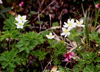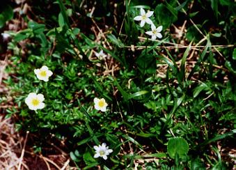 そうそうこういう花ならすぐにわかるんだ(威張るなって)。白花の代表格とTakemaが勝手に決めつけているハクサンイチゲ。この花もけっこう群れるのが好きなようだけれど、自分の知ってる中で一番壮観なのは、北アルプス北ノ俣岳直下の大草原だな。ハクサンイチゲしかないお花畑って感じで、けっこう感動した記憶があるぞ。それにしても、北アでは7月下旬の花なのに、やっぱりこっちの方が標高低いからなんだなあと妙に納得してしまった。