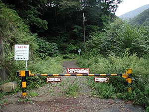 四万温泉からちょっと入ったところにて車を置き、ここからは頑丈系ゲートのある林道をポコポコと歩き。さすがにここも、自分が知らなかっただけかそれなりに有名なところらしく、結構車が止まっていました。マイクロバスもとまっていたので「おいおい、さては相当混んでるの?」と思ったら、どうやらハイキングのグループがチャーターしたバスのようでした。ということはちょうどお昼時の今頃、この団体は山の中をぽこぽこ歩いているはずだから、この時間のお風呂の混雑とは関係あるまい。そう信じて、いざお風呂目指して歩き始めました。
