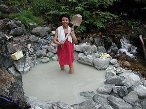 こんな感じでお湯を堪能。ちなみに水ホースからの補給が絶妙で、見事に適温♪