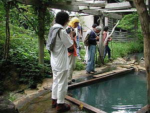 さて、ここを訪れたのは8月も間もなく終わろうとする平日でした。しかし、わたしらが着いたときには5人くらいの先客がいて、あがる頃にはまたもや5人くらいの新客さんが到着しました。「ここもかなり有名なんだなぁ、こんな山奥なのに」と思っていたら、どうやら理由はそれだけではなかったようです。