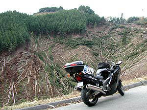 あれま、一気に伐採していますねぇ。間伐じゃなくて見事な皆伐です。でも、伐っているのはもともと植林した木々ですから、ちょうど用材としてふさわしい太さに成長したということなんでしょうか。それにしても、価格の高い国内材、売れるんだろうか‥ちょっと心配になったりします。この後植える木はやっぱり杉なのかなぁ。長期的に考えて「広葉樹の森を復活させる」なんていうすんごい計画は‥ないだろうなぁ、残念だけど。