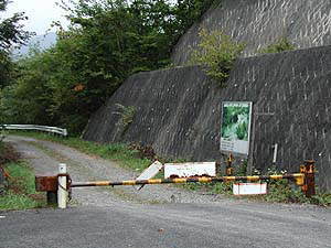 この日はちょうどお彼岸の中日ということで、朝一番でお墓参りを済ませてからの出発となりました(ご先祖さんは全てに優先?)。途中栗山村内で蕎麦を食べたりしたこともあって、川俣温泉から日光に抜ける舗装林道をさかのぼる途中にある分岐ゲート(左上の写真)を出発したのは14:40。かなり遅い出発ですが、まぁ2時間もあれば着くだろうしとタカをくくっていました。実際の到着は日没ぎりぎりになっちゃったんですけれど(苦笑)。
