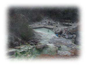 岩の窪み@一人用湯船に入っているのが見える。あまりに小さい湯船ゆえ足がはみ出てるぞ。