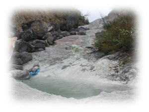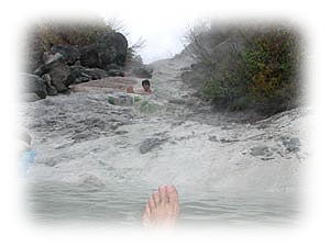 右の写真は源泉の湧出口の上で撮ったもの。湧出口付近は暑くて写真も撮れない。