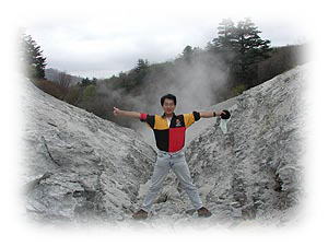 肘折温泉から瀬見温泉、鳴子温泉という2つの有名どころをあえてパスした上でたどり着いたのが、こちらの「荒湯地獄」。とはいっても宿などの観光施設は一切ない。「地獄」という名がついていることからもわかるように、ここは硫黄や火山ガスの噴出口。ということで、駐車場周辺を歩くだけでは入浴できるようなお湯などどこにも湧いていない。