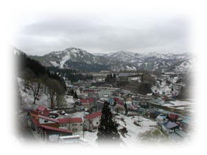 肘折温泉に3軒ある共同浴場はいずれも朝8:00オープンということでしばし散歩しつつ時間をつぶす。あたりはまだまだメートル単位で雪が残っていて、この奥にあるはずの無料露天風呂へ行こうと思っても道すらわからない。なんだぁ、そこへ行くのも目的だったのに。