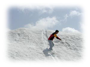 峠の駐車場付近はまだ数mの積雪が残っている。しかも、地元の人には珍しくも何ともない(というか邪魔くさかった)雪ゆえに、ほとんど誰も足を踏み入れた形跡がない。しかも場所によっては適度な急斜面があり、雪遊びにはもってこい。となればTakema夫婦がそのまま何もしないはずがないわけで、まるで「お約束」のように遊びに行くことに。ま、こればっかりは年齢なんて関係なしの楽しみですな。