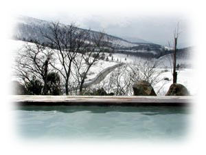 お湯は透明に近いがやや青みがかっている。露天風呂には10名ほどが入っていたが、湯船がとても大きく全然混んでいる気分にはさせられない(ちなみに内湯もほぼ同じ大きさ)。あたりの風景はなかなかに絶景。雪のたっぷり付いた栗駒山方面を眺めつつ足を伸ばしてゆったり入れる。中にはしっかりビールを持ち込む人もいたが、販売機は脱衣場の外なので、今さらおいそれと買いに行くわけにもいかず諦める。
