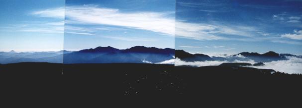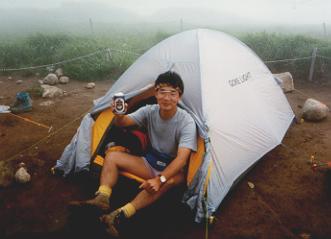 小屋わきのキャンプ場はシーズン中ゆえに満員御礼状態。何とかスペースを見つけてテントを設営し、持参のビール(この時はなぜかSingaporeのTigerBeer背負っていったんだった。どこで買ったんだろ。謎だ)をプシュッ、ウグウグ、プハァ!…とまではいつものこと。そうしたら隣に張ってたソロの人から「いいですねえ!」の声。そこですかさず「よかったらいかがですか?」と誘う。そしたらもう大変なことに。どんどん宴会モードにはいっちゃって。揚げ句の果てには「酒がない!(実はまだ持参のウォッカとかあったんだけど)何とか小屋で売ってもらおう!」となり、避難小屋ゆえ売店すらない小屋の管理人さんの個人的な酒をつまみ+心付けで売ってもらい(確か7〜8合くらい)、山上の大宴会となったのであった。あーっ、やってること変わらんなぁ俺って(笑)。