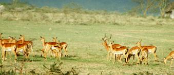 何が羨ましいって?インパラはサルなどと同様、通常は群で行動するそうなのです。その際の集団構成はリーダーのオス一匹とその他のメス。ということはこの写真の中央にいる角の生えたやつはこの群を率いるただ一匹のリーダーか?「おいおい、あぶれてるやつもいるんだからそんなに独り占めしちゃ駄目だよ」と、ついつい説教の一つもたれてやりたくなるほど立派なお姿でありました(^_^)。