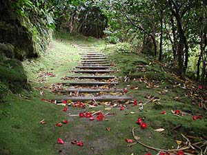そして俊寛僧都。僧侶ながらも気が荒くて鼻っ柱が強く、現状に不満たらたらで時の政権を倒すにはどうしたらよいかと考えていたのなら、まぁよくいっておぼっちゃん育ちというところでしょうか。しかも「都人」としてのプライドは強く(これは当時の貴族意識としてはある種当然のことではありますが)、島に着いたあとも彼一人だけは島人と交流を持たずに山奥に一人移り住み(俊寛堂)、残りの二人が前ページの写真にあるような熊野神社(三所権現)を建立して帰京を祈願していたときも、それに参加することはなかったようで、それでも彼らとは一応付き合っているというのですから、何だか妙に中途半端な見栄というかプライドを抱き続けていたようです。