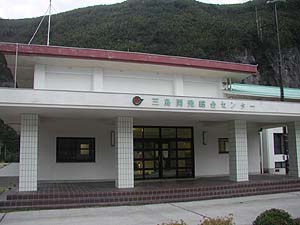そして写真右が、とても立派な「三島開発総合センター」。人口約140人のこの島には似つかわしくないほど(失礼!)立派な施設。中には俊寛僧都や安徳天皇にまつわる資料室(必見!受付の人にことわって見せてもらいましょう)や、なんと無料の温泉浴場まであったりするのですが、詳しくはあとのページで説明することにしましょう。